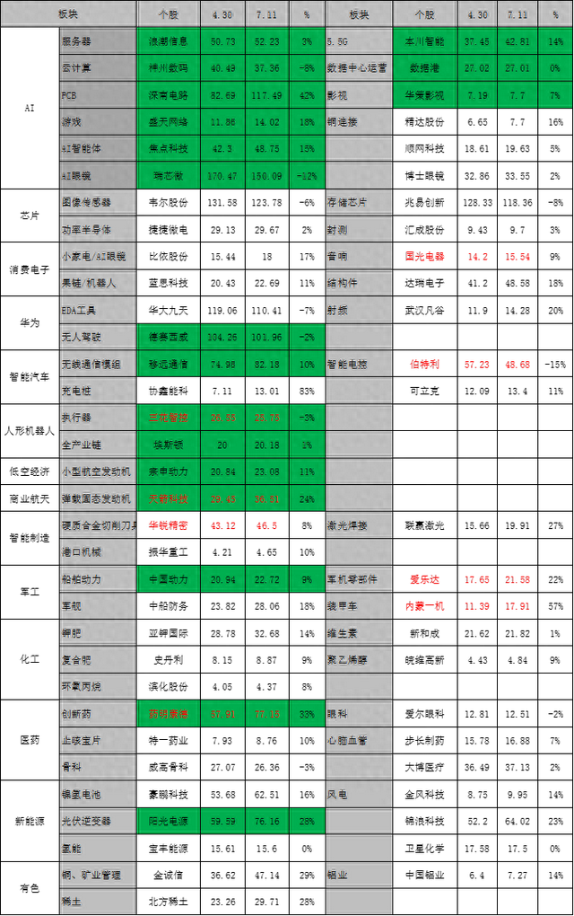 这12只票,稳定币(协鑫能科),军工(内蒙一机、天箭科技、爱乐达),算力(深南电路),创新药(药明康德),有色(金诚信、北方稀土),光伏(阳光电源、锦浪科技、联赢激光),6G(武汉凡谷)。军工3席,光伏3席,有色2席。
